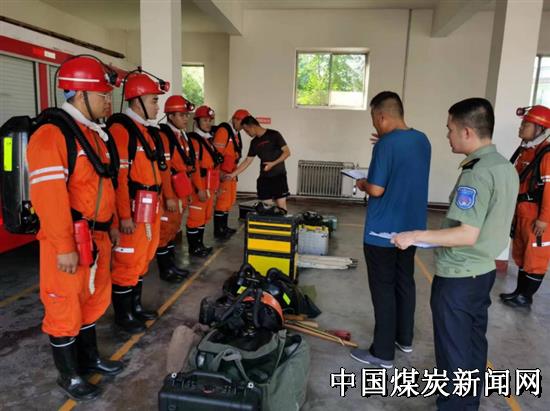 8月23日上午指战员正在整理内务,打扫卫生时,铃铃铃...急促的警铃声响彻大队院内,中队值班指挥员飞速前往电话值班室询问情况,值、备班小队立即放下手头工作,跑步前往车库面向汽车列队,值班指挥员听取电话值班员汇报事故情况后,中队指挥员布置事故任务,迅速登车,42秒后车辆驶出车库。随后指战员在值班中队长带领下携带事故救援装备依次下车,面向指挥员列队并进行了战前检查、装备确认,此时战训科长询问了值班小队队员张凯,“哪里发生事故,有无遇险遇难人员、你所携带的装备是否完好,详细介绍你所携带的装备的用途等”,被问到的指挥员进行了详细的回答。最后随机抽查了2名指战员业务操作能力,并模拟井下身边“战友”氧气呼吸器发生故障、现场有一名遇险矿工需要施救,值班小队长立即布置工作任务,队员紧张有序的给“战友”更换4小时氧气瓶、给伤员进行苏生器操作,并给伤员佩戴2小时氧气呼吸器等,操作结束后,战训科科长王战峰对大家提出2点要求: