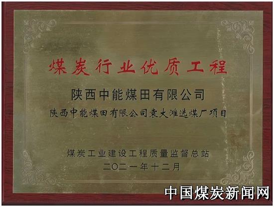 | 中能袁大滩矿业洗煤厂项目荣获煤炭行业优质工程及“太阳杯”荣誉称号 | |||