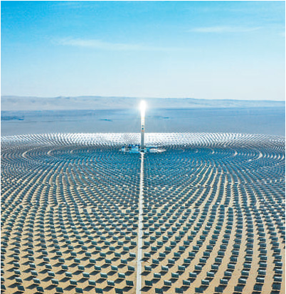 首航高科敦煌100兆瓦熔盐塔式光热电站在戈壁滩上闪耀。 本报记者 伊 霄摄