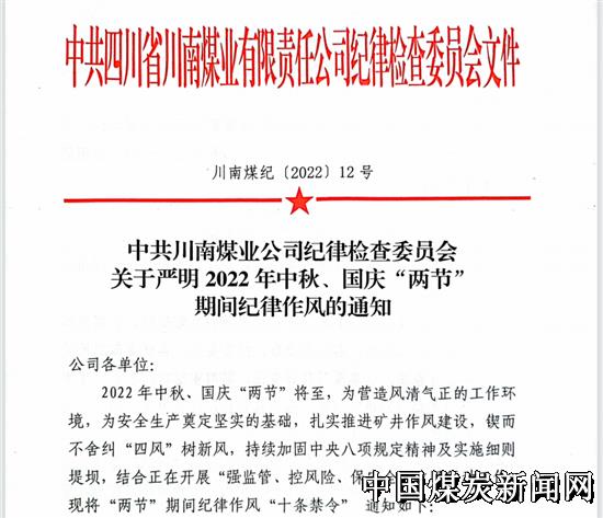 【本网讯】为营造风清气正的工作环境,持续加固中央八项规定精神及实施细则堤坝,川南煤业公司纪委出台“两节”期间纪律作风“十条禁令”,督促干部职工严格遵守廉洁自律各项规定,确保廉洁过节。