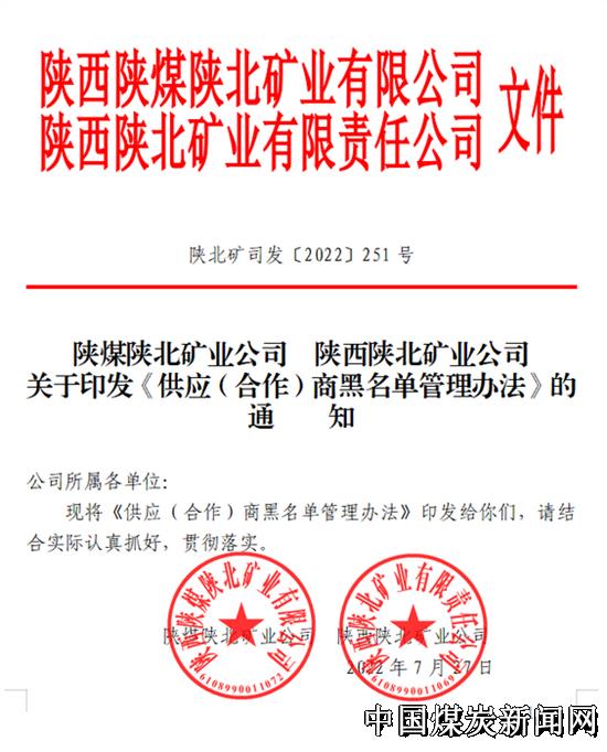 | 陕北矿业公司施行供应(合作)商黑名单管理办法 | |||
