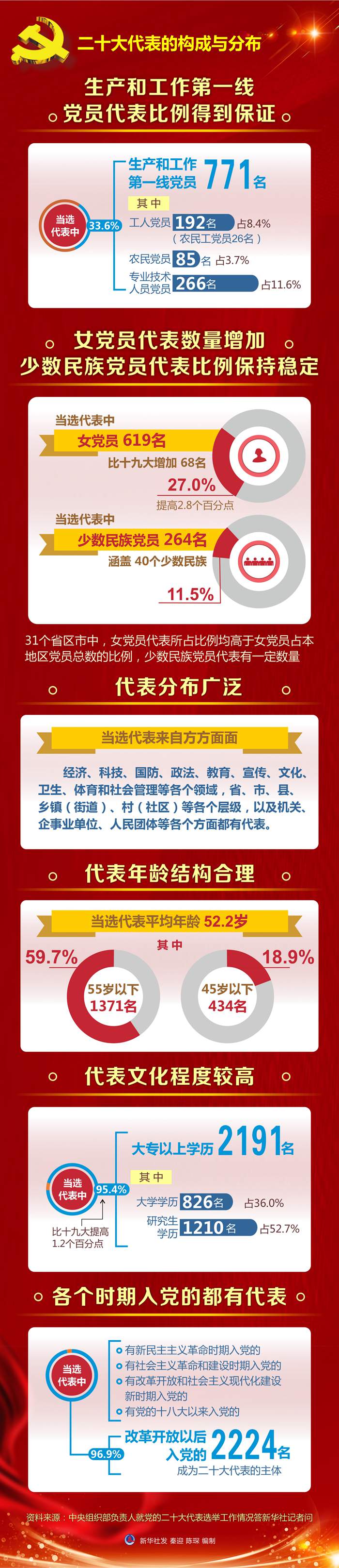 二十大代表的构成与分布 新华社发 秦迎 陈琛 编制