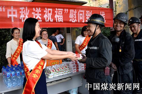 在活动现场,女工协管员们热情地招呼着每一位上下井的职工,为他们送上月饼、矿泉水等慰问品,并祝工友们中秋节快乐,牢记安全生产和亲人嘱托,遵章守纪,按规程作业,高高兴兴下井,平平安安归来,确保安全生产。
