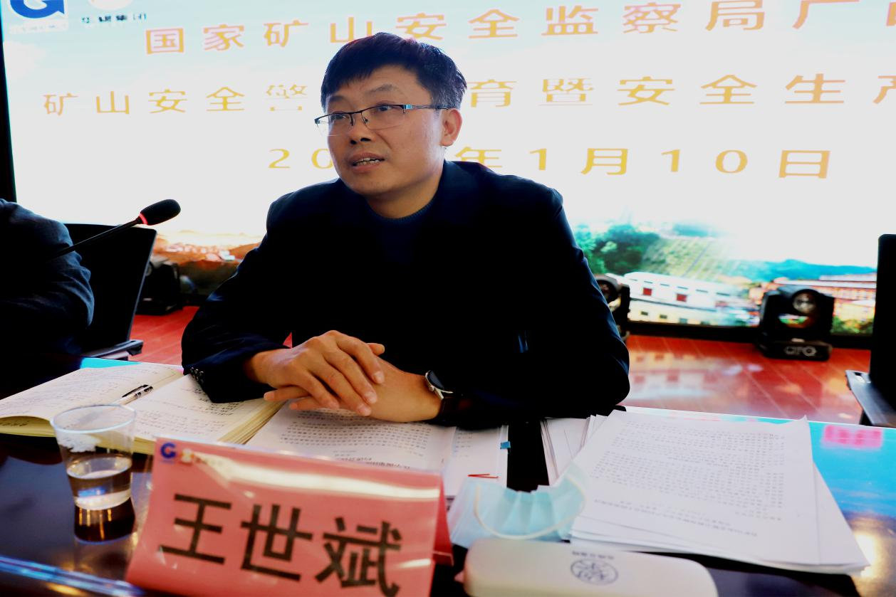 1月10日,国家矿山安全监察局广西局(以下简称广西局)联合自治区应急管理厅在广西华锡集团高峰矿业公司召开了矿山安全警示教育暨安全生产约谈会。广西局党组副书记、副局长(主持全面工作)王世斌出席会议并讲话。 王世斌指出,矿山企业要深入学习贯彻落实习近平总书记关于安全生产的重要论述和指示批示精神,贯彻落实国家矿山安全监察局和自治区党委政府关于安全生产工作重大决策部署,认真汲取矿山安全事故教训,深入剖析事故原因,查找矿山安全生产突出问题,提出并落实好进一步加强矿山安全生产工作措施。 (王世斌讲话)