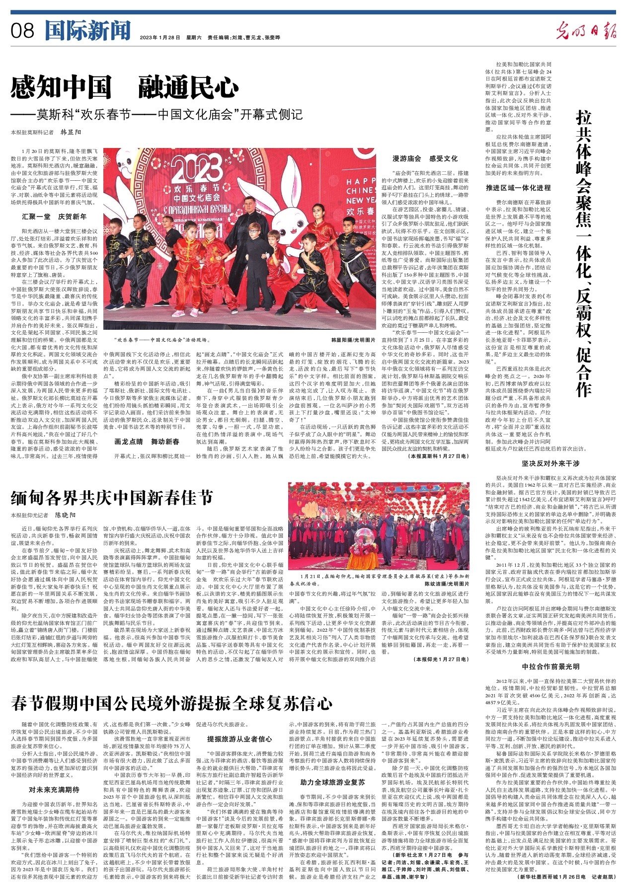 随着中国优化调整防疫政策、有序恢复中国公民出境旅游,不少中国人选择春节期间到国外度假,为多国旅游业复苏带来信心。 分析人士指出,中国公民境外游、中国春节消费潮等让人们感受到经济复苏的强劲动力,也更加深切意识到中国经济向好的世界意义。 对未来充满期待 为迎接中国农历新年,世界知名滑雪胜地瑞士少女峰在缆车起始站布置了中国兔年装饰和传统红灯笼等喜迎春节的饰物,并在欧洲海拔最高火车站“少女峰-欧洲屋脊”旁边的冰川上展示兔子形态冰雕,以迎接中国游客到来。 “我们想给中国游客一个特别的欢迎方式,因此在冰川上刻出了兔子,因为2023年是中国农历兔年。我们还有很多其他表现中国元素的欢迎方式,这些都是我们第一次做。”少女峰铁路公司管理人员凯斯勒说。 该滑雪胜地一直非常重视亚洲市场,新冠疫情暴发前年均接待75万人次亚洲游客。凯斯勒说:“我相信中国市场有很大潜力,因此做了这么多面向中国游客的活动。” 中国农历春节大年初一早晨,印度尼西亚巴厘岛机场用当地传统歌舞和具有中国特色的舞狮表演,欢迎2023年首个中国旅游包机从深圳抵达当地。巴厘省省长科斯特表示,中国多年来一直是巴厘岛的最大游客来源国之一。中国游客的到来一定能推动巴厘岛旅游业蓬勃发展。 在马尔代夫,维拉纳国际机场特意安排了喷射巨型水柱的“水门礼”,以高级别礼仪欢迎中国优化调整防疫政策后直飞马尔代夫的首个航班。在这趟航班上,不少中国家长带着放假的孩子出国游玩。马尔代夫旅游部长毛素姆表示,中国游客的到来将极大促进马尔代夫旅游业。 提振旅游从业者信心 “中国游客群体庞大,消费能力较强,这为菲律宾的酒店、餐饮等旅游服务业的就业提供巨大帮助,”菲律宾有利东方旅行社副总裁许智超告诉新华社记者,“时隔三年,菲律宾旅游行业出现复苏迹象,订票、订房和团队游日渐繁忙。相信菲中两国人文交流和旅游合作一定会向好发展。” “我们怀着满满的爱在雅典等待中国游客!”谈及今后的发展前景,希腊一家餐厅老板斯皮罗斯·贝拉克塔里斯心中充满期待。马尔代夫当地旅行社工作人员拉伊德说,很高兴看到中国客人又回来了,这对于当地旅行社和整个国家来说无疑是个好消息。 荷兰旅游局形象大使、羊角村村长盖比日前接受新华社记者专访时表示,中国游客的到来,将有助于荷兰旅游业持续复苏。目前,作为荷兰热门旅游景点,羊角村接获的来自中国旅行团的订单在增加。预计从第二季度开始,到荷兰进行高端自助游和商务考察旅行的中国游客人数将持续保持增长势头,荷兰旅游业也将因此受益。 助力全球旅游业复苏 春节期间,不少中国游客来到长滩、保和等菲律宾旅游目的地度假,当地酒店和餐馆重现疫情前爆满的景象。菲律宾旅游部长克里斯蒂娜·弗拉斯科表示,中国游客的到来是新年好兆头,将极大帮助菲律宾旅游业恢复,“感谢中国将菲律宾列为首批恢复出境团队旅游目的地之一,菲律宾将以开放姿态欢迎中国朋友”。 在希腊,旅游部长瓦西利斯·基基利亚斯也向中国人致以节日问候。旅游业是希腊经济的支柱产业之一,产值约占其国内生产总值的四分之一。基基利亚斯说,希腊旅游业希望在2023年延续复苏势头,需要进一步开拓中国市场、吸引中国游客,“非常期待、非常高兴能在希腊迎接中国游客到来”。 除夕前一天,中国优化调整防疫政策后首个赴埃及中国旅行团抵达开罗国际机场。埃及民航部长特别代表、埃及航空公司董事长叶海亚·扎卡里亚在欢迎仪式上说,埃中两国都是拥有璀璨历史的文明古国,埃方期待在埃及境内前往各个旅游目的地的中国游客数量不断增多。 西班牙国家旅游局局长米格尔·桑斯表示,中国有序恢复公民出境旅游等措施将助力全球旅游市场全面复苏,西班牙期待迎接中国游客。 (新华社北京1月27日电 参与记者:闫洁、刘锴、余谦梁、车宏亮、王湘江、于帅帅、刘叶雨、姚兵、刘佳琪、单磊、连漪、谢宇智)