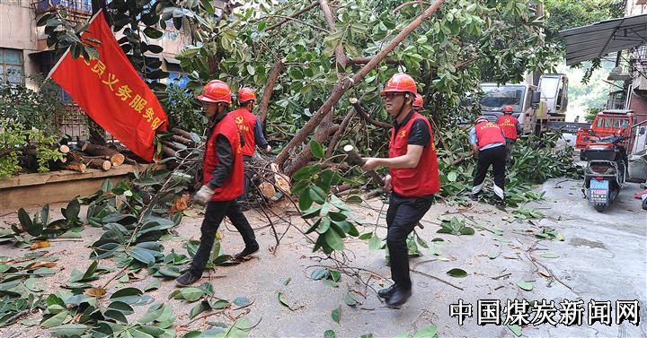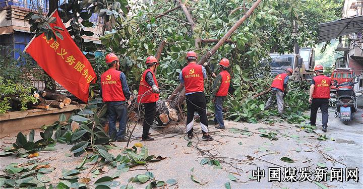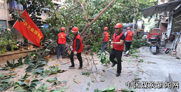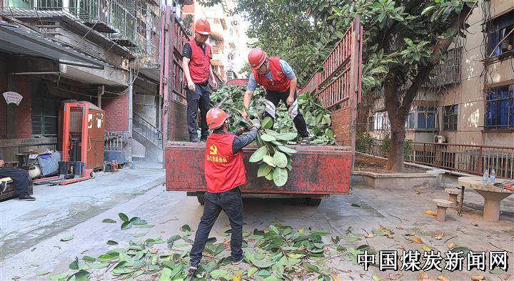 小宝鼎煤矿党员“红帽子”为校北住宅小区道路修剪树枝