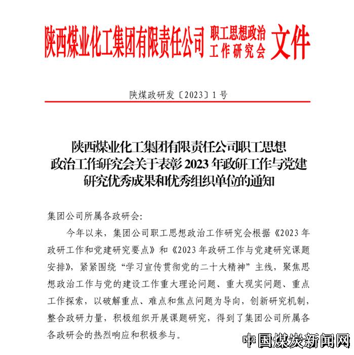 | 陕北矿业公司三项政研与党建研究成果获陕煤集团表彰 | |||
