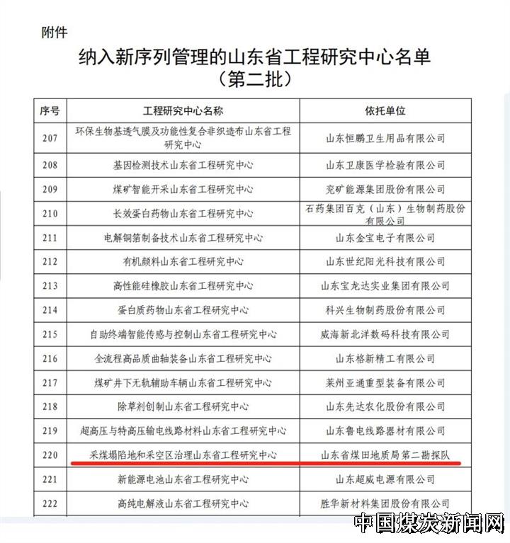 | 山东省煤田地质局二队第一工程研究中心被纳入省发改委新序列管理 | |||
