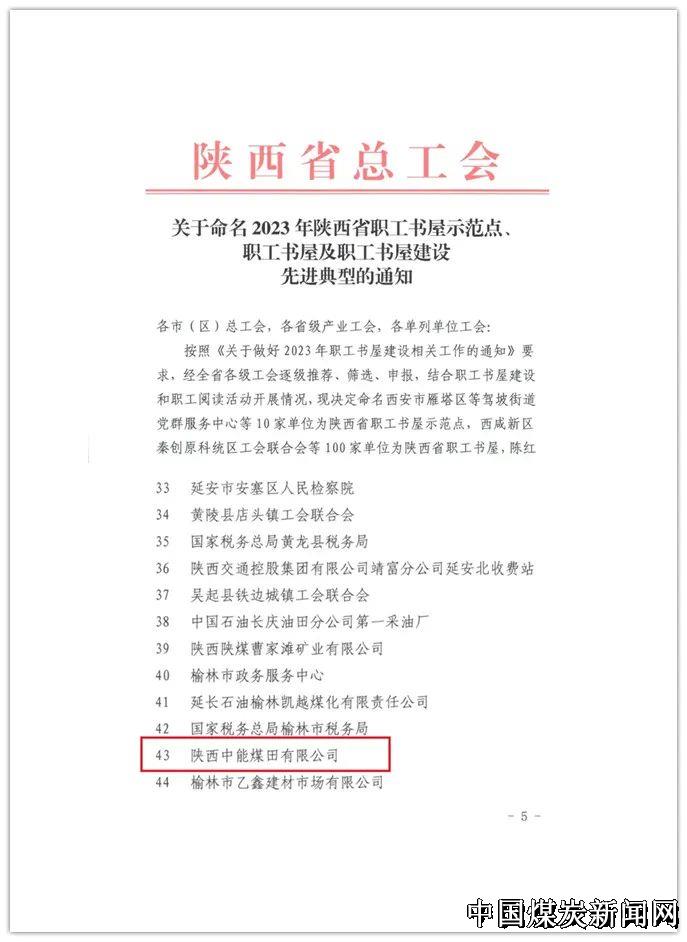 | 陕西中能煤田有限公司职工书屋荣获省总工会“职工书屋”称号 | |||