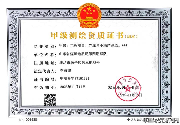 | 喜报!山东省煤田地质局四队成功获得甲级测绘资质证书 | |||