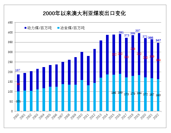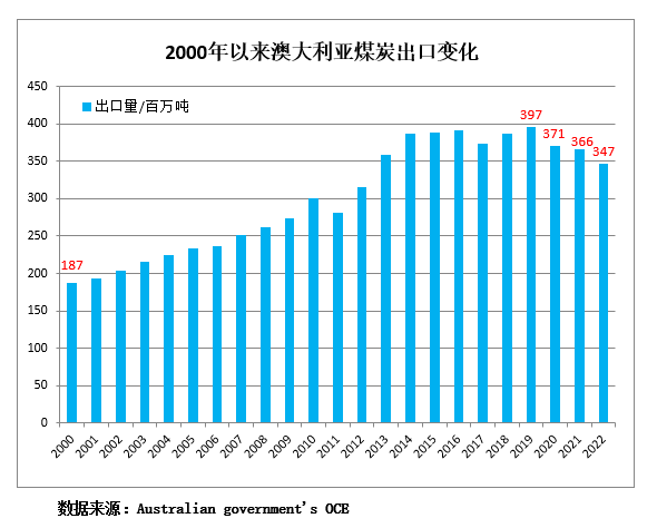 | 2022年澳大利亚煤炭出口量预计为3.47亿吨 同比下降5.1% | |||