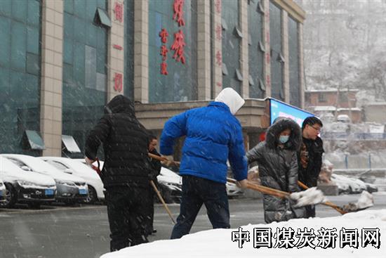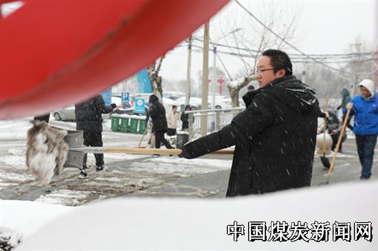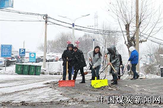 雪景虽美,但当时积雪已达到8厘米,低温形成路面湿滑结冰,对职工通行和煤炭销售运输带来了不便。为确保行人行车安全畅通,矿井各支“党员服务队”再次向风雪发起冲锋,除雪除冰,开辟出一条条通畅路。
