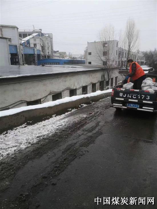 后勤管理中心领导闻讯,马上安排中心环卫队,组织队员对该处进行撒盐除冰,清理出道路。环卫队立即用皮卡车装载20余袋工业用盐,慢慢开到873广场上方后,司机调转车头小心翼翼的驾驶车辆顺坡道一路向下,坐在车后的环卫队员随即舀上工业盐,开始小心的进行抛洒。这200米的坡道被撒上工业盐后,道路上的冰冻层开始慢慢融解,随后环卫队员们又携带铁锹等对融解的积冰进行了清理,保证了运输设备的车辆正常通行,确保了高阳矿安全生产的有序进行。