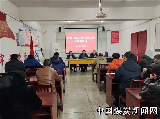【本网讯】“ 咱们要自觉用党的二十大精神统一思想行动,凝聚奋进力量,立足岗位、落实行动,把各项工作做实做细,奋力谱写高质量发展新篇章……”安徽淮北双龙公司形势任务宣讲员正在通风区会议室里宣讲党的二十大精神。通过唱响党的好声音,以学促干,点亮新时代的奋进路,引领干部职工怀揣初心、扎实工作,全力以赴迈开奋斗搏击的步伐,确保全年开好局、起好步。