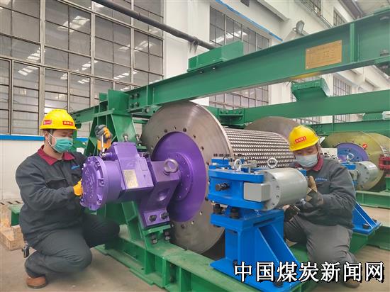 在河南永煤集团龙宇装备总装车间里,职工们正在加急组装永磁同步电动滚筒带式输送机,争取早日发货,运往各大煤矿。