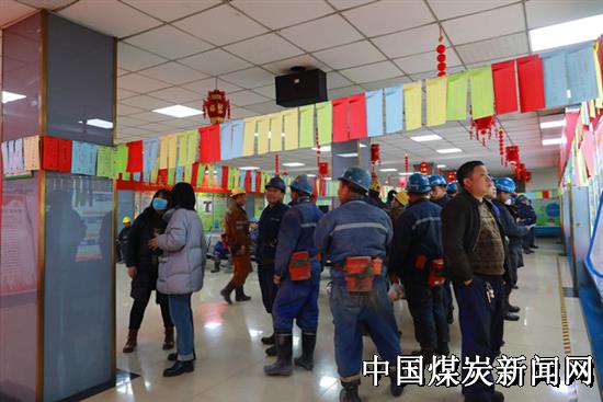 元宵节前夕,矿工会积极筹备、精心组织,举办元宵猜灯谜活动,一排排五颜六色的灯谜,将副井候罐大厅装扮的喜庆美丽。