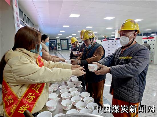 当天早晨5时左右,女工协管员们就在食堂操作间集合,将400余份元宵煮熟后送到老副井口智能灯房,每六个汤圆装成一碗寓意顺心顺意,等待上下井职工。6时30分左右,上下井职工渐渐多了起来,女工协管员们热情的为上下井职工端上一碗碗热气腾腾、香甜可口的“平安”元宵,同时叮嘱现场职工:“在新的一年里要牢记安全使命,遵章守纪、坚决杜绝违章作业,让企业放心、让家人安心。”暖心的话语使现场职工真切的感受到企业大家庭的温暖和节日氛围,促使广大职工以更加饱满的精神状态投入到安全生产工作中。