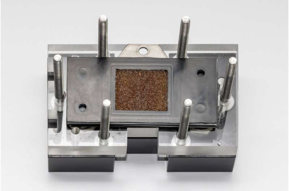 单元堆栈:由合成树脂制成的低成本电解质为单元提供了额外的稳定性 图片来源:Forschungszentrum Jülich / Ralf-Uwe Limbach 莱茵地区的煤炭不仅是发电的重要燃料,化学工业也使用它来生产重要的基本化学品。但到煤炭逐步淘汰时,这些物质必须从其他可再生能源获得。一个例子是一氧化碳,简称CO,这是生产某些塑料和醋酸所必需的。 为此,位于欧洲的尤利希研究中心的科学家正在研究一种基于可再生发电的气候友好型技术,使用二氧化碳电解,将温室气体二氧化碳直接转化为一氧化碳。研究人员现在已经克服了一个重要障碍,并为大规模应用开发了一个可扩展的单元堆栈。 这项研究是结构变革项目iNEW的一部分,该项目旨在通过引入基于可再生的流程来促进莱茵地区就业的增长和保持。 “CO通常是由工厂大规模在现场生产的。它很难运输,因为它是一种有毒且高度易燃的气体,”尤利希能源和气候研究所(IEK-9)的研究生Maximilian Quentmeier解释道。通常,煤炭在没有足够氧气的情况下燃烧以产生气体CO。 但在煤炭逐步淘汰后,将需要其他流程。将来,作为基本化学品仍然需要一氧化碳,例如需要这种气体来生产聚碳酸酯和聚氨酯,这是用于制造眼镜镜片和绝缘面板的材料。 Maximilian Quentmeier和他的主管Bernhard Schmid一起,正在研究一个也被称为CO2-CO电解的过程。该方法使用所谓的气体扩散电极:一种多孔电极,在其背面提供二氧化碳,而电极正面毗邻液体或固体电解质。电极连接两种介质和电流,从而确保最终产生“绿色”一氧化碳(CO)。 这个过程不仅对化学工业有吸引力,还有助于气候保护。当用可再生能源电力运行时,二氧化碳电解工厂将不对气候产生影响。如果二氧化碳来自大气层,例如通过直接空气捕获,或来自沼气的收集,该技术甚至可能是气候阴性的(也就是能够帮助减碳)”Bernhard Schmid解释道。 总而言之,该技术可以帮助积极降低大气中的二氧化碳浓度。Bernhard Schmid说,原则上,未来的可再生塑料会成为类似于木材的碳汇(carbon sink)。 实现实际应用的里程碑 Quentmeier和Schmid两位研究人员在商业化道路上已经达到了一个重要的里程碑。他们通过多次改进和更换组件,成功地将单个单元转换为堆栈式电解器,并在各种性能测试中进行了测试。结果最近发表在ACS可持续化学工程期刊上。 在堆栈中,单元格紧密地相互叠加。堆叠较小的单元比大型单个单元的制造成本低得多。“在从单个单元开始设计堆栈时,有几个方面需要考虑。例如,气体反应的单元有多个腔室,这些腔室在实验室尺寸上通常不受支持。堆栈的单元必须承受压缩力,同时保持渗透性,”Quentmeier解释道。 在现实过程条件的假设下,于利希研究人员为此优化了气体流场和电流收集器的设计。不使用通常的液体电解质,而是使用由离子导电合成树脂制成的聚合物电解质通过的固体流作为支撑元件,在结构上支撑电解质间隙。 由于巧妙的阳极设计,研究人员还能够完全省略膜和阳极之间的电解质室。对于堆 栈,相邻单元的正负电极、阴极和阳极被连接两个电池的单个组件(双极板)所取代。 在当前使用未针对效率优化的模块化组件的实验设置中,堆栈实现了30%的效率。研究所所长Rüdiger-A教授解释说,对于已经在100°C以下运行的这种过程来说,这已经是一个相当有希望的结果。 例如,与高温共电解相比,工厂设计相对简单,生产纯一氧化碳而不是合成气体,这进一步简化了许多应用的处理。因此,能够以去中心化方式向莱茵地区的工业公司提供基础化学品CO,从而节省运输成本,”Rüdiger-A说。下一步是进一步发展和提高效率,使单元堆栈进入大规模生产准备的最后阶段。 编译:htb