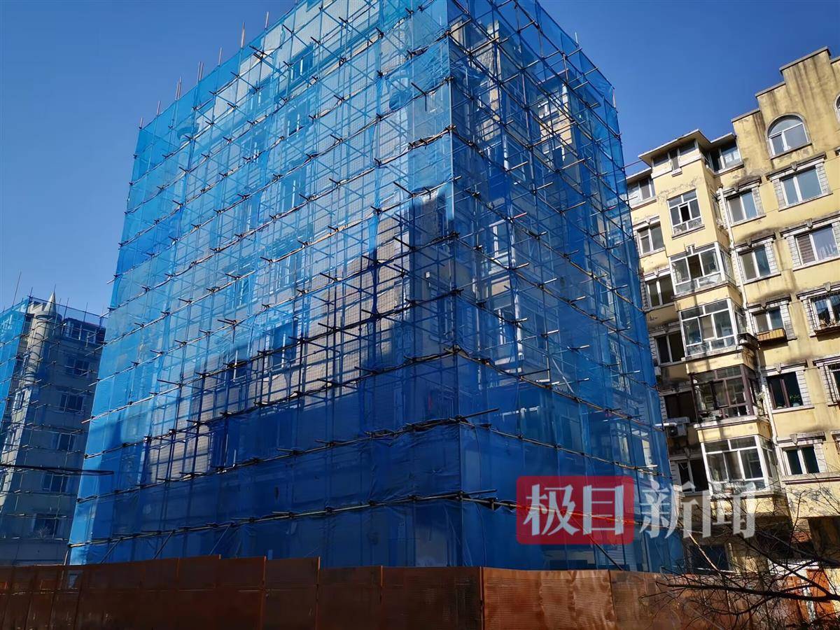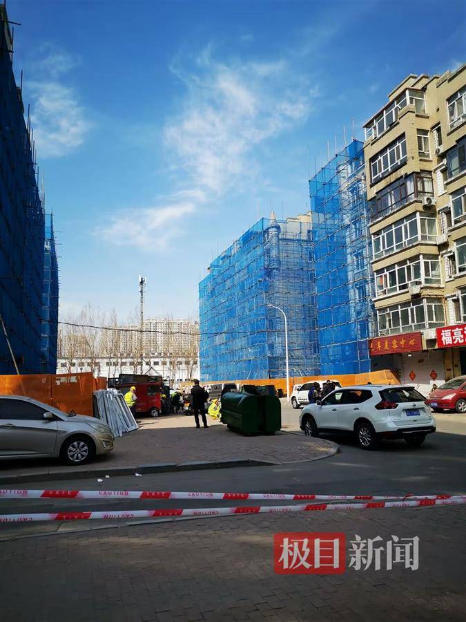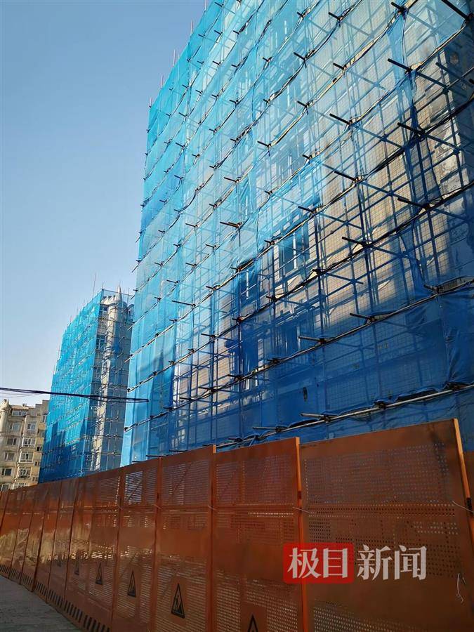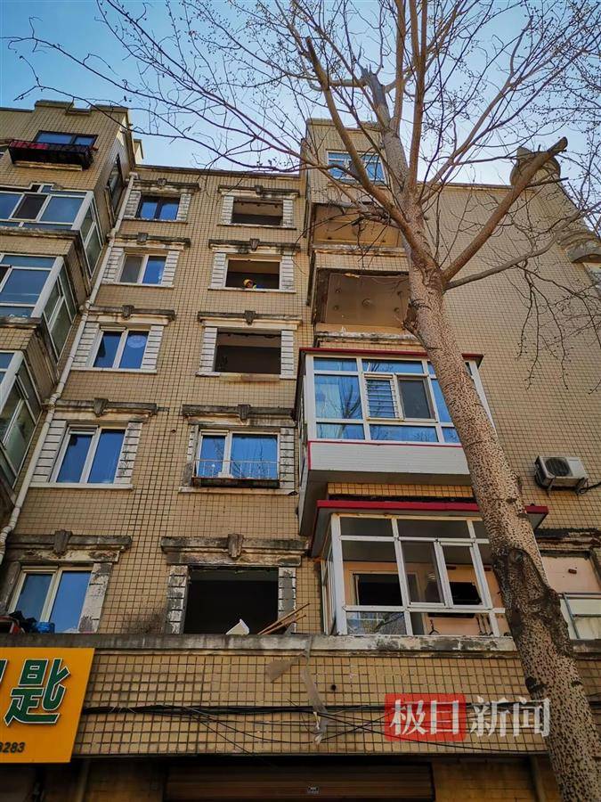 发生爆炸的11号楼已被纱网罩住 记者看到,这栋楼一共7层,1楼为商铺,2到7楼为居民住宅,在1单元和2单元的前后和右侧,均用钢管搭着脚手架,脚手架外面蒙着纱网。在人行道边,还用高约两米的黄色挡板将涉事楼栋封闭。
