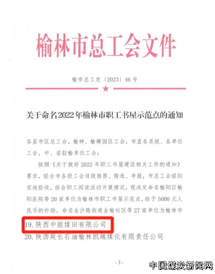 | 陕西中能煤田有限公司职工图书室获“榆林市职工书屋示范点”荣誉称号 | |||