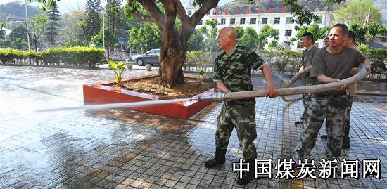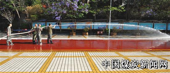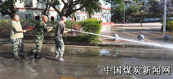 为进一步强化矿区环境卫生清理整治,强力推进创建全国文明城市工作深入开展。3月31日,川煤集团华荣能源小宝鼎煤矿武保队组织5名工作人员,分别对该矿矿区部分主干公路沿线和鼎馨广场进行了冲洗。