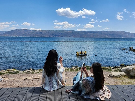 3月23日,云南大理天气晴朗,洱海边“网红s湾”打卡拍照游客众多。