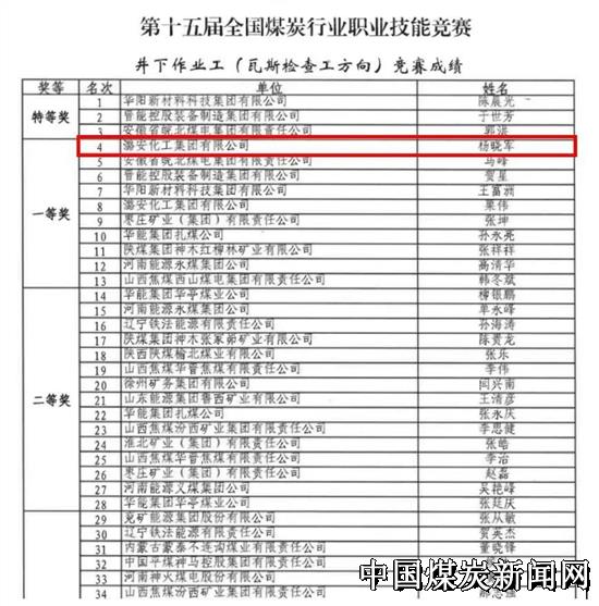 2023年3月20日,全国行业职业技能竞赛——“华阳杯”第十五届全国煤炭行业职业技能竞赛在华阳集团举办。来自全国14个省、自治区、直辖市的64家煤炭企业代表队共446名选手齐聚华阳集团同台竞技。经过为期3天的紧张比赛,本届竞赛圆满结束,5个赛项结果均已产生,潞安化工集团古城煤矿职工杨晓军荣获“瓦斯检查工”一等奖,取得全国“瓦斯检查工”第四名的好成绩。