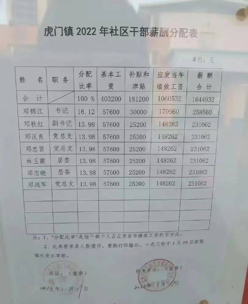 近日,一张题为“虎门镇2022年社区干部薪酬分配表”的图片在社交媒体引发关注。
