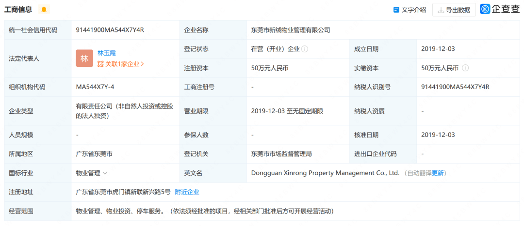 在这张“虎门镇2022年社区干部薪酬分配表”中,社区干部的薪酬被划分成了三个部分,分别是“基本工资”“补贴和津贴”“应发当年绩效工资”。 在“基本工资”部分,所有干部2022年的“基本工资”均为57600元,即每月4800元;在“补贴和津贴”部分,除书记2022年的该项收入是30000元外,其余6名干部的该项收入均为25200元。 但薪酬构成的第三部分,即“应发当年绩效工资”均远超前两项的合计。分配表显示,2022年的该项年收入书记为170960元,其余干部均为148262元。因此总的算下来,在该社区,书记2022年的月均薪酬约为21546.7元,其余干部的月均薪酬约为19255.2元。 据上游新闻报道,5月30日,广东省东莞市虎门镇相关部门回应称:“该社区有一个新联股份经济联合社,财务独立核算,由他们自己分配薪酬等。”当事社区的相关工作人员回应:“按照相关财务文件精神制定的薪酬分配,并得到上级单位批准。”他还表示:“这只算中等水平,附近几个社区还有更高的。” 企查查显示,新联股份经济联合社成立于2005年11月,法定代表人为邓锦江,机构类型为村级集体经济组织,经营范围包括集体资产经营与管理、集体资产开发与利用等。 新联股份经济联合社共对外投资了1家企业,为东莞市新绒物业管理有限公司,该公司成立于2019年12月,注册资本50万元人民币,法定代表人为林玉霞,经营范围包括物业管理、物业投资、停车服务。