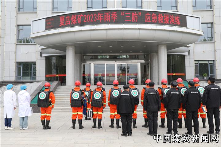 应急演练从当日上午9时开始,演练模拟当地遭遇强降雨极端天气,大量雨水涌入到主斜井,严重影响矿工的生命及财产安全,夏店煤矿立即启动《雨季“三防”应急预案》,兼职救护队迅速到位,根据应急预案各自开展救援工作。