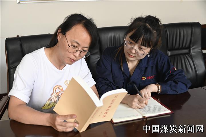 近日,石壕煤矿坚持学思用贯通、知信行统一,将理论学习作为开展主题教育的重要抓手,引导干部职工主动自觉学、结合实际学、抓紧空闲学,把推动工作落实作为检验主题教育工作成效的重要标尺,总结发展经验、凝聚全员力量,从最突出的问题抓起,从最现实的利益出发,助推企业稳定向好发展。图为两名职工利用空闲时间在学习《习近平著作选读》。