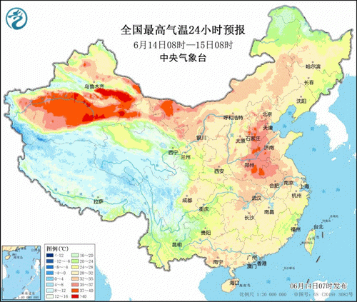 中央气象台6月14日18时发布今年首个高温黄色预警:预计6月15日白天,华北、黄淮及内蒙古东南部和西部、新疆东部和南疆盆地等地有35℃以上的高温天气,其中,京津冀、河南、山东、安徽、内蒙古、新疆等省份部分地区最高气温37~39℃,局地可达40℃以上。 局地气温38度以上,郑州高温天气持续 郑州市气象台预计15日白天,全市大部分地区最高气温将超过37℃,局地气温可达38℃以上;16日白天,郑州东部最高气温仍将升至37℃以上。请注意防范。 这轮高温过程有何特点?是否具有极端性?将给人们生产生活带来哪些影响?中央气象台首席预报员张芳华进行了解读: 1.北方地区高温发展趋势如何?是何成因? 答:此轮高温过程从6月13日开始逐渐发展,预计15日至16日将达到此次过程的最强阶段。 根据中央气象台的预计,6月15日至17日,华北东部、黄淮及辽宁、内蒙古东南部等地有35℃以上高温天气,其中,京津冀、河南中北部、山东中西部、安徽北部以及内蒙古东南部、辽宁西部等地部分地区日最高气温达37℃至39℃,局地可达40℃以上;18日以后,高温影响范围将明显减小,强度减弱。