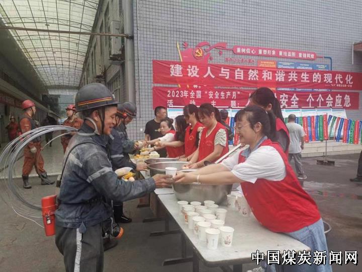 “师傅,您们辛苦了,喝杯绿豆汤解解渴”,活动现场,女工们热情的向出入井的员工送上鸡蛋、面包、绿豆汤等,同时叮嘱他们在工作中按章操作,切莫粗心大意,把好安全关,高高兴兴上班,平平安安回家。员工们纷纷表示,一定会为矿井的发展和个人的幸福履行好安全职责,为全方位推动6月“安全生产月”活动的开展贡献自己的力量。为了让员工们更加了解“安全生产月”相关工作安排,矿工会还专门录制了矿井《2023年“安全生产月”活动实施方案》的广播在现场播放。