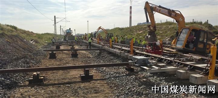 6月1日经过221分钟的天窗作业,多方在紧张有序的配合下,拆除了华电装卸站榆横铁路正线K23+560-K23+515位置线路,新插入216#道岔,216#道岔钉曲开直,连通216#道岔至214#道岔渡线,又经过人工补砟、起道、捣固等作业,达到开通条件。各项工作都在有序推进,坚持每天召开施工协调会,保证施工过程中线路设备的安全稳定,再次掀起了施工生产新高潮。