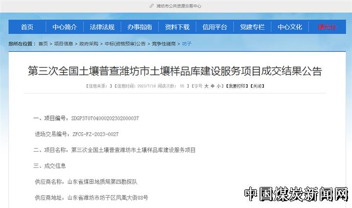 | 捷报!山东省煤田地质局第四勘探队中标潍坊“三普”土壤样品库建设项目 | |||
