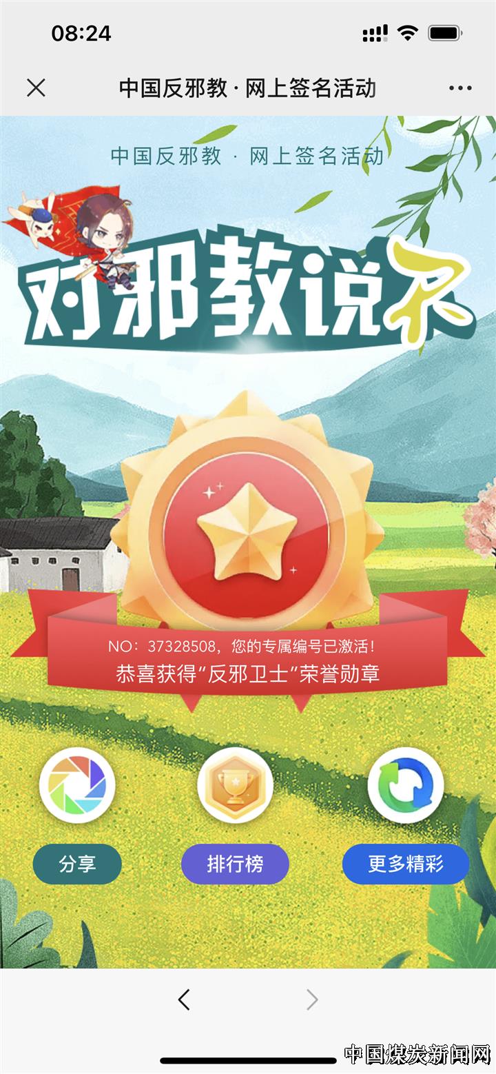 【本网讯】近日,河南能源义煤公司石壕煤矿组织开展反邪教网上签名活动,深入贯彻落实中央维护国家政治安全重要指示精神,进一步提高广大干部职工防邪、拒邪、反邪意识,切实增强干部职工对防范邪教工作能力,揭露邪教本质,杜绝各类风险隐患,营造良好的矿区氛围。 该矿在微信群发送反邪教网上签名活动流程,全矿干部职工打开签名链接,扫描二维码后进行签名,签名后获得“反邪卫士”荣誉勋章。并积极宣传“反邪拒邪”相关内容,弘扬正确价值观,正确引导干部职工群众破除迷信、崇尚科学、传播文明,营造反对邪教氛围。与此同时,还对各党支部开展反邪教工作进行隐患排查,各党支部排查后,填写《石壕煤矿反邪教隐患排查统计表》,进行统计上报。 通过开展此次活动,使全矿干部职工充分认识邪教的危害性,进一步认清了邪教本质,从而倡导全民理性、科学、文明的生活方式。大家纷纷表示,今后要坚定理想信念、崇尚科学、反对邪教,为建设平安石壕贡献力量。 ![]()