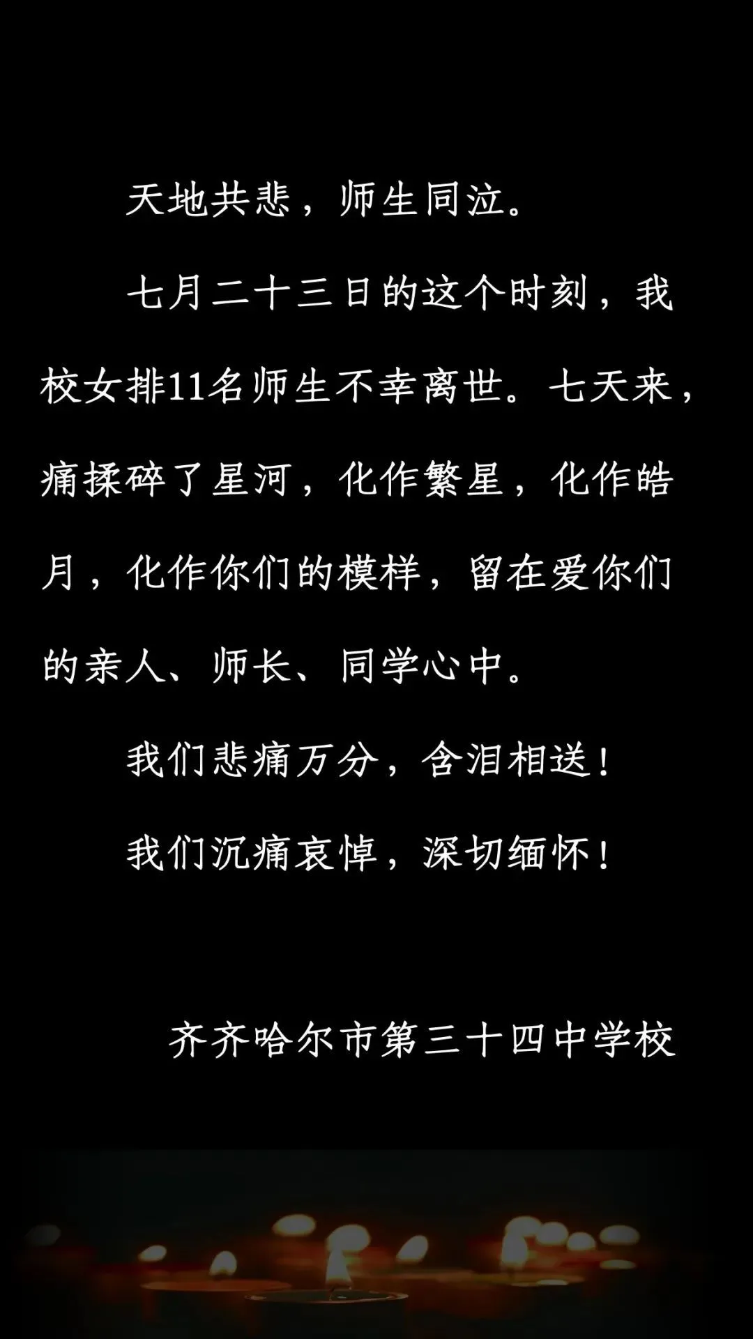 | 齐齐哈尔市三十四中发布悼文 | |||