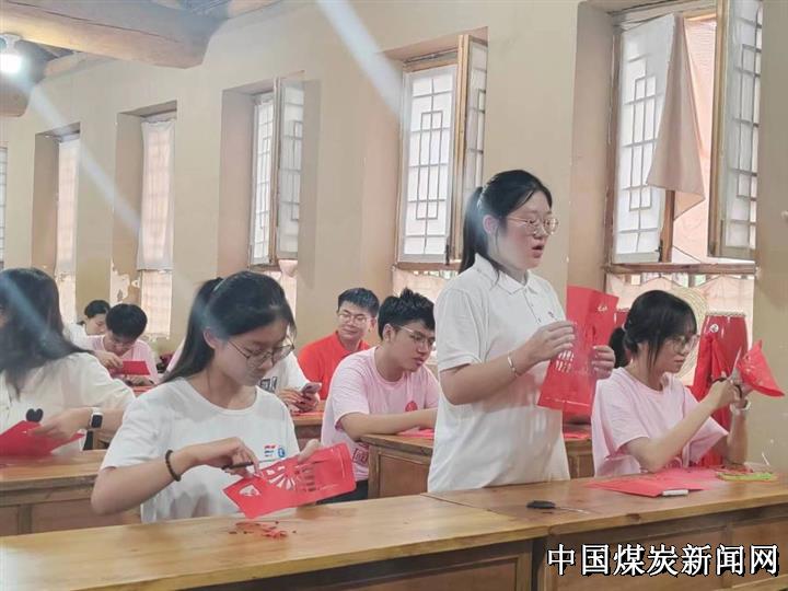 下午4点,直播正式开始。腰鼓组的实践团成员积极配合主持人的安排,以灵动的舞姿,有力的锤击,向大家展示了“矿大行者,追忆延安革命情”实践团昂扬进取的精神面貌和安塞腰鼓刚劲激昂、剽悍豪放的艺术特点。采访组成员讲述的一段段腰鼓和剪纸背后的历史故事,也令观众们对延安传统文化有了更深更全面的了解。接着,随着直播镜头转移到教室,加入剪纸组的实践团成员大方向直播间展示了她制作完成的榆林剪纸。剪纸主体以窑洞门作为主要造型,突出洞门中间的五角星和上方的党徽,意为希望实践团成员在回想起此次延安行时,不仅记得以特色民居窑洞和安塞腰鼓等为代表的陕西传统文化,还感悟到老一辈革命家们攻坚克难、不懈奋斗的坚定理想信念。