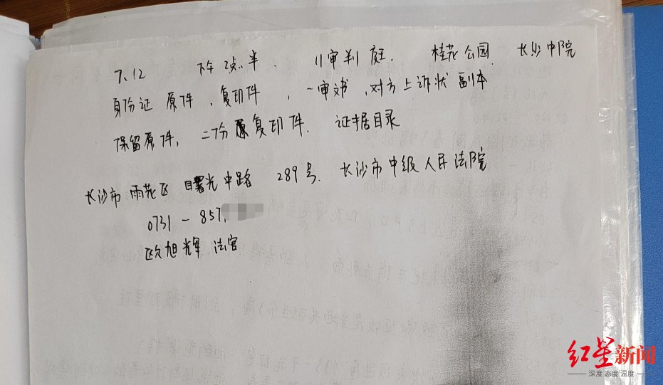 7月初,张韵还和代理律师通了几次电话,在一张白纸上,她认真记下了开庭的注意事项:“7月12日、下午2点半、长沙中院、11审判庭、一审文书、证据目录。”纸的背面,是她手写梳理出的丈夫重婚生子证据。 张家有三姊妹,张韵最小,她们的父母一直在宁乡老家养牛养羊,宁乡离长沙仅一个半小时车程。中专毕业后,张韵就随两位姐姐到东莞打工。2004年老家的一次亲戚聚会上,贺某母亲看上了一直端茶倒水的张韵,经人介绍给了小儿子贺某。隔年二人领证结婚,生下了女儿婷婷。在老家亲戚印象中,张韵从小就帮忙放牛养猪,勤快懂事,只是不善言辞,性子有些软弱。嫁到张家后,街坊邻居都形容她为人温和,不怎么爱说话。 贺某在家中也是最小,他还有一个哥哥。结婚初期,贺某给张家人留下了好印象。“人很好,孩子换尿布、哄睡都是他在干。”张韵二姐张琴介绍,每次娘家有人到长沙给张韵过生日时,也都是贺某开车接送,带一家人到长沙海底世界玩。