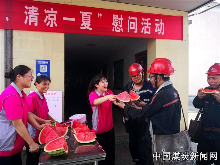 8月3日中午,安徽淮北矿业朱庄煤矿妇女协安员在给职工们送西瓜,不停地提醒职工师傅在工作中时刻注意安全,她们一句句温馨的嘱咐、贴心的叮咛,沁人心脾。炎炎夏日,酷暑难耐,该矿工会积极应对高温天气,持续开展送清凉、送关爱活动,进一步提高一线职工的获得感、幸福感和安全感,切实让广大干部职工群众感受到企业的关心关爱,激励大家树立干事创业的信心和决心。