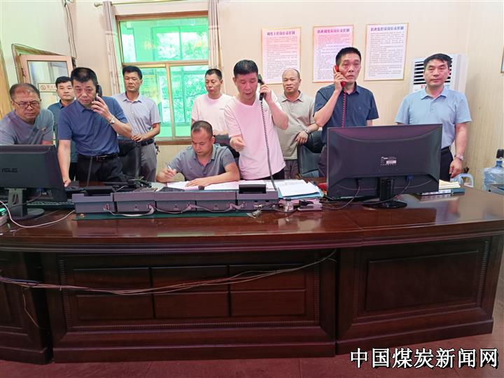 下午2:30分,随着该矿调度室急促的电话铃声响起,井口因遭遇大雨,发生倒灌现象,防汛应急演练正式拉开了序幕。在接到“险情”汇报后,矿调度室立即启动应急预案,立即通知井下各作业点按照水灾避灾路线有序撤离,同时按照事故处置程序通知应急处置指挥部成员到调度台进行应急救援。