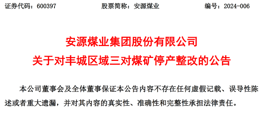 | 安源煤业集团股份有限公司对丰城区域三对煤矿停产整改 | |||