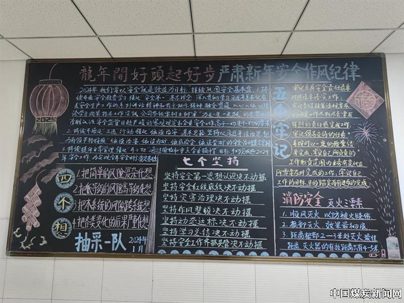 【本网讯】为抓好2024年首季安全生产工作,进一步夯实安全基础,2024年2月,四川古叙煤田公司石屏一矿在基层单位举办“开好头 起好步 严肃新年安全作风纪律”专题黑板报竞赛。![]() ![]() ![]() 该矿各基层单位紧紧围绕办报主题,以四川古叙煤田公司党委书记赖旭刚在安全工作会上讲话精神、石屏一矿党委新年安全作风纪律要求:“七个坚持”“五个牢记”“四个想”为主要内容,结合本单位安全生产实际,精心绘制黑板报。