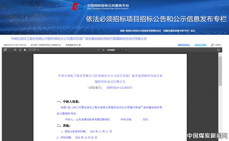 | 开门红!山东省煤田地质局四队中标一临时用地方案编制项目 | |||