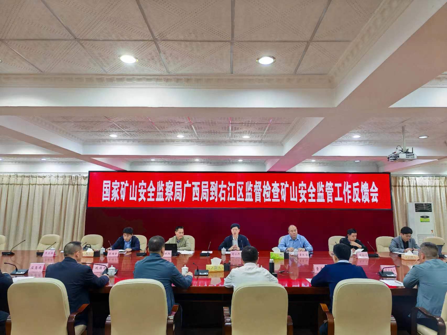 苟小兵在检查反馈会上指出,右江区党委、政府高位推动矿山安全生产工作,印发了一系列文件细化明确党委政府领导、监管部门和企业安全主体的三方责任。但右江区矿山监管部门矿山专业人才缺乏,监管力量不足,执法效能不高,这些都给矿山安全生产带来了严峻挑战。 苟小兵强调,一是要提高政治站位。右江区党委政府、部门及矿山企业要按照全国矿山安全工作会议部署要求进一步提高思想认识,拿出过硬过实措施,盯紧看牢,坚决守住不发生矿山事故的底线。二是坚决落实矿山安全生产责任。首先要落实地方党委政府矿山安全生产领导责任;其次要落实负有矿山安全监管职责部门的矿山安全监管责任,一方面慎重研究关闭退出矿井设备回收问题,另一方面要创新监管执法方式,规范严格执法,发扬斗争精神;最后要狠抓企业落实安全生产主体责任。三是强化安全警示教育,用“6·12”事故教训进一步推动矿山监管工作。四是加强《关于进一步加强矿山安全生产工作的意见》《关于防范遏制矿山领域重特大生产安全事故的硬措施》《煤矿安全监察条例》及治本攻坚三年行动方案的学习宣传贯彻。五是做好督查出问题整改工作。右江区矿山安全监管部门要督促矿山做好这次检查发现的隐患整改工作。 右江区党委政府领导、应急管理及自然资源等部门负责人、相关企业主要负责人参加反馈会。