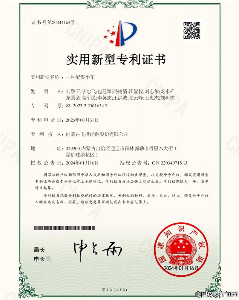 | 内蒙古电投能源股份有限公司北露天煤矿两项科技创新项目喜获国家知识产权局专利授权 | |||