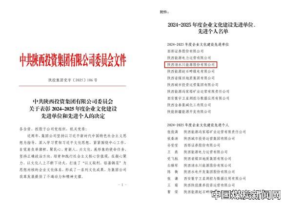 | 陕西清水川能源股份有限公司荣获陕投集团“企业文化建设先进单位”称号 | |||
