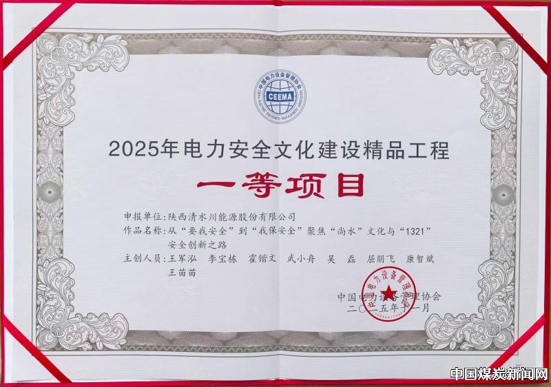 | 喜报!陕西清水川能源股份有限公司荣获2025年全国电力安全文化建设精品工程一等项目 | |||