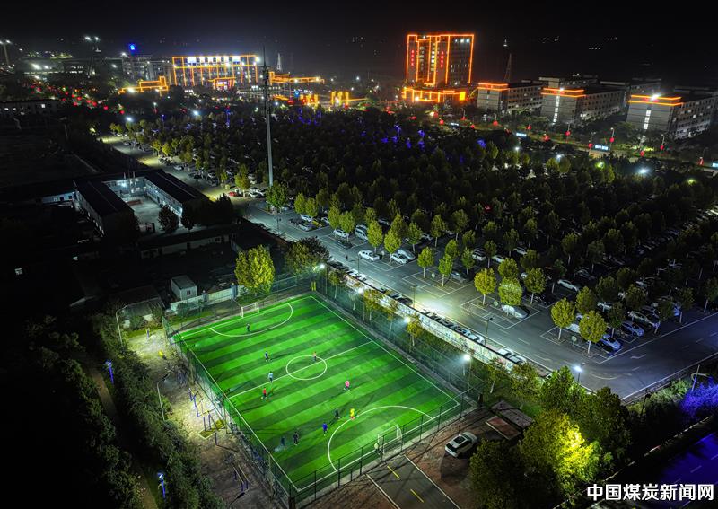 【本网讯】为丰富职工精神文化生活,展现企业以人为本的管理理念,中煤新集刘庄矿业为矿区职工及家属增添了一处设施先进、环境优美的现代化灯光足球场。该足球场配备专业照明系统,可满足夜间比赛及训练需求,球场铺设了人工草坪,兼具安全性与舒适性,有效提升了职工业余文化生活的品质。图为,该矿职工下班后进行足球比赛。