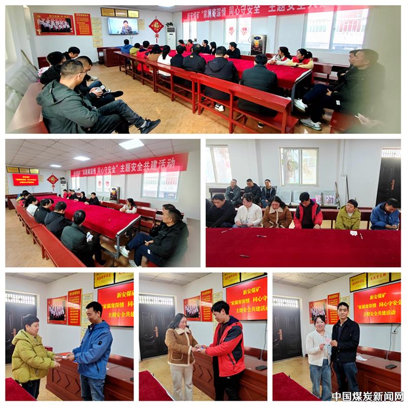 ![]() ![]() 随后,大家共同观看了《事故警示教育片》和《安全嘱托 幸福相随》两部视频。当屏幕上出现事故家属撕心裂肺的哭声时,会议室里一片沉默;而《安全嘱托》里孩子抱着爸爸说“我等你回家吃饭”的画面,又让许多职工悄悄擦去眼角的泪。家属代表们将亲手写的亲情寄语卡交到丈夫手中,有的写着“老公,我和孩子等你平安回家”,有的画着一家三口的简笔画。夫妻双方共同在安全包保协议上签下名字,笔尖落下的不仅是承诺,更是沉甸甸的责任。最后,在场职工齐声朗诵协议内容:“我承诺,严守安全规程,规范操作行为,守护家庭幸福,筑牢安全防线……”整齐的宣誓声回荡在会议室,也刻进了每一位职工的心里。 这场充满温情的安全共建活动,用亲情的力量唤醒了职工的安全意识,让“要我安全”变成“我要安全”“我会安全”。在新安煤矿,安全不再是一句口号,而是家属的期盼、职工的责任,更是每个家庭幸福的底色。